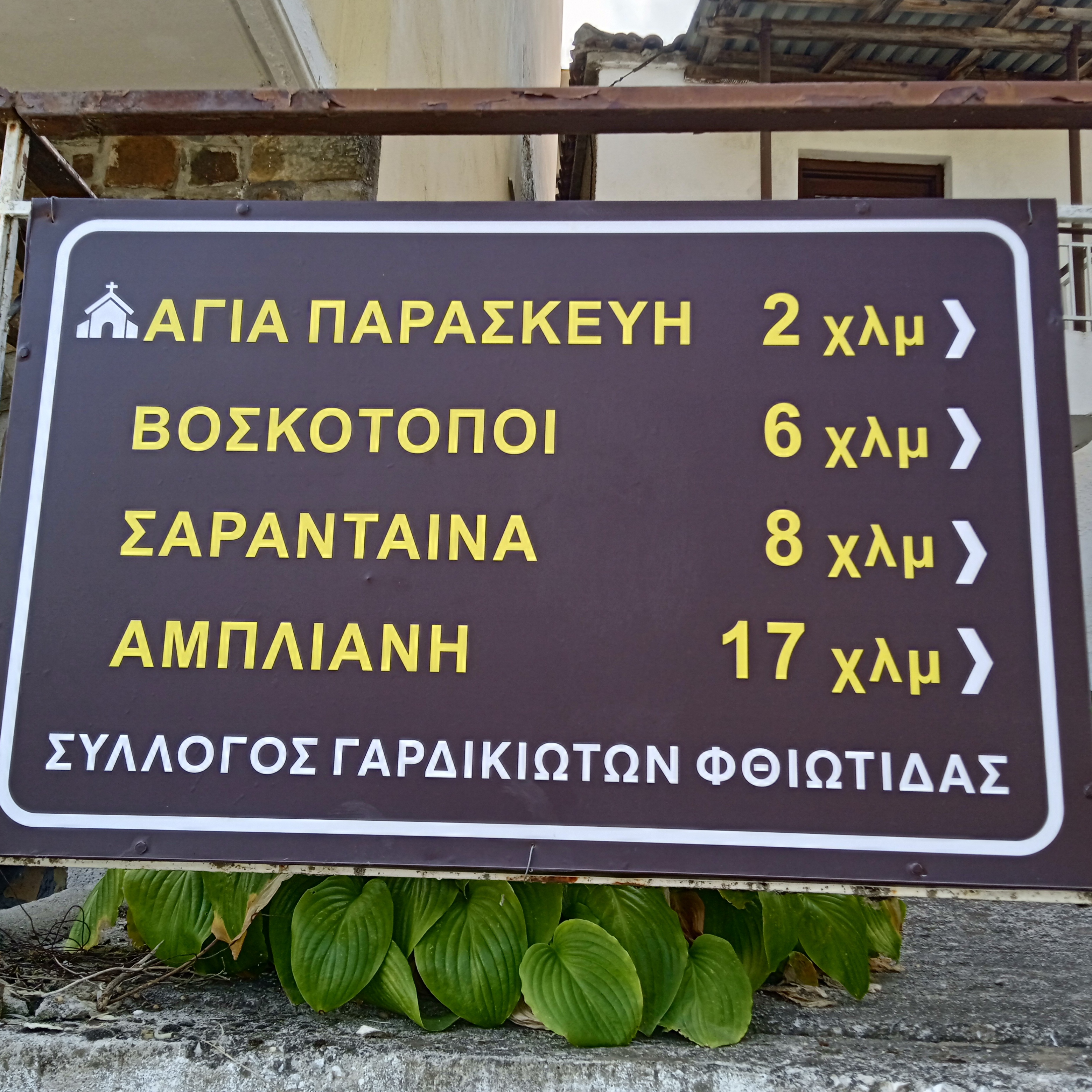 σημείο του χωριού μας η οποία δείχνει τους παρακάτω προορισμούς
